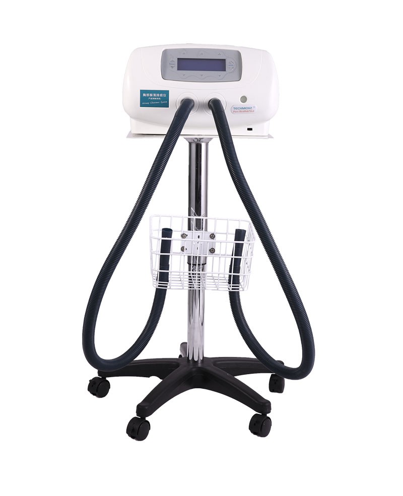 背心式排痰機作用原理: 通過模擬正常生理咳嗽的原理,將患者所穿專用充氣背心用導氣軟管連接到高速脈沖泵上,并快速地充氣和放氣,使患者胸壁發生有規律的舒張運動,患者氣道和肺部發生自主的震顫氣流和定向引流力,促使呼吸道粘液及各個肺葉深部代謝物松弛,液化、脫落;并在定向引流力的作用下將已液化脫落的代謝物按照選擇的方向(如細支氣管→支氣管→氣管)排出體外。