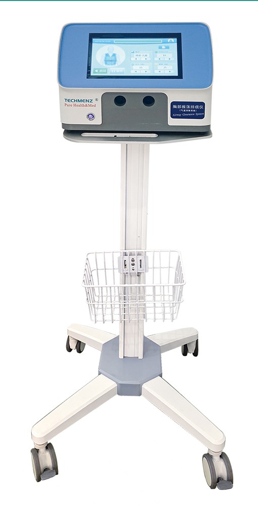 工作原理: 包括空氣脈沖發生器 、充氣背心 、束帶 。采用高頻胸壁震蕩技術  主機快速的充氣和放氣  使背 和束帶 使患者的胸壁產生高頻的振動 。從而使得粘稠的痰液松動 、脫落 、稀釋  聚集  同時刺激氣道壁的纖毛擺動, 將痰液轉移至氣管和口腔排出。