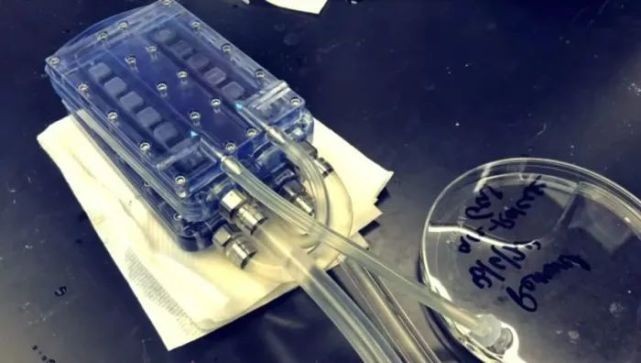 以前的測試已經讓這些部分中的每一個獨立工作,但這是該團隊第一次測試它們在一個設備中串聯工作。該生物人工腎連接到病人的兩條主要動脈--一條將血液輸送到體內過濾,另一條將過濾后的血液輸送回體內--以及連接到膀胱,廢物在那里以尿液形式沉積。
